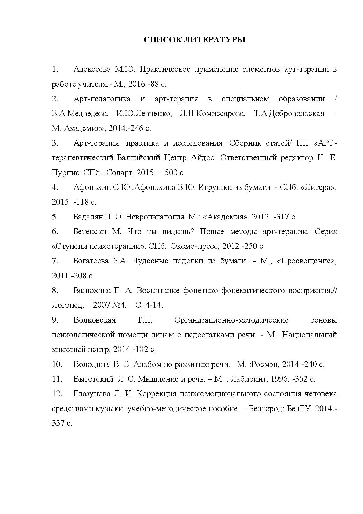 - Список литературы, или по другому — библиографический список.